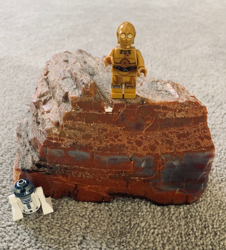 Fossils are the preserved remains or traces of remains, of ancient organisms. Fossils are not the remains of organisms themselves, they are rocks. It takes a long time for preserved remains to become fossils in the process known as fossilization. In the picture below I am standing on a fossil, known as petrified wood.